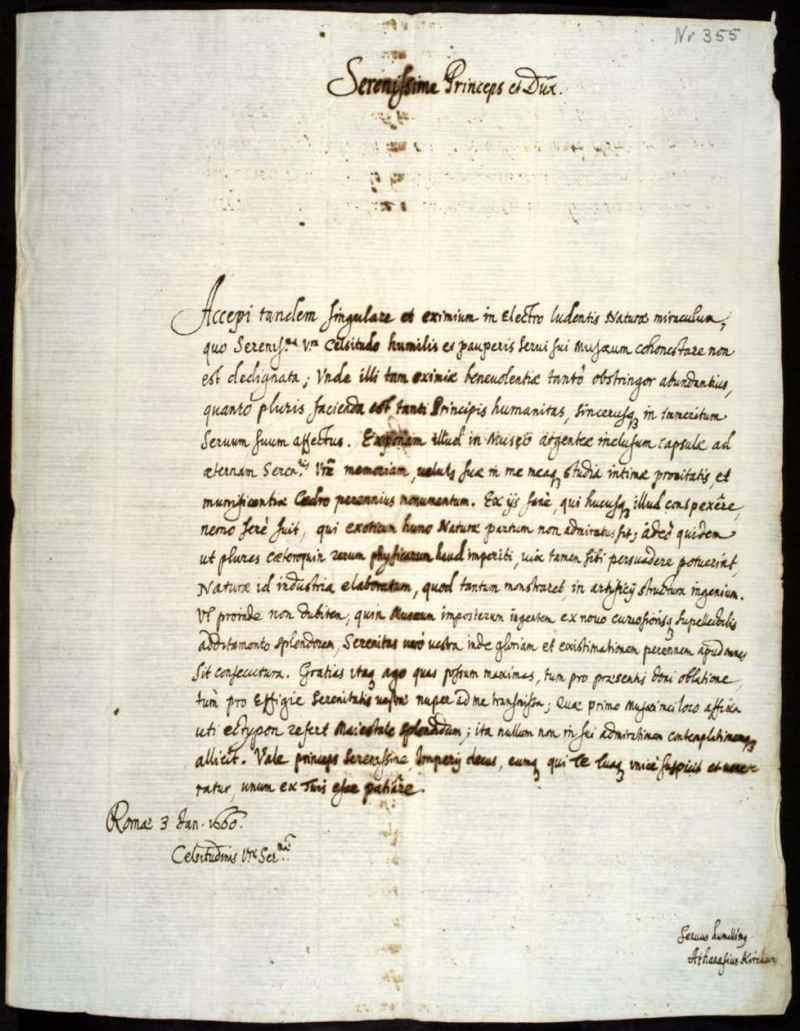 Одно из писем Атанасиуса Кирхера Кирхер видел во всем так много скрытых связей, что со стороны это может показаться манией.По всей видимости именно подозрительность побудила его к созданию прослушивающих систем, которыми был нашпигован учрежденный им кабинет диковин - «Музей Кирхерианум» в Collegio Romano.