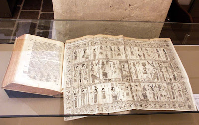 Музей Кирхерианум» в Collegio RomanoСамую же большую известность на поприще лингвистики и криптографии Кирхеру принес его монументальный труд «Эдип Египетский» (Oedipus Aegyptiacus, 1652–1655), в котором он предпринял попытки дешифровки египетских иероглифов. В книге Кирхер пишет, что эти таинственные знаки скрывают то, что осталось от знания, которое Бог открыл людям до Потопа. Он считает Египет колыбелью всех знаний. До того, как Шампольон откроет смысл иероглифов (1822), работы Атанасиуса Кирхера о Египте будут считаться основополагающими. Сам Папа Александр VII брал у него уроки чтения иероглифов. Книга Кирхера «Эдип Египетский» (Oedipus Aegyptiacus, 1652–1655)