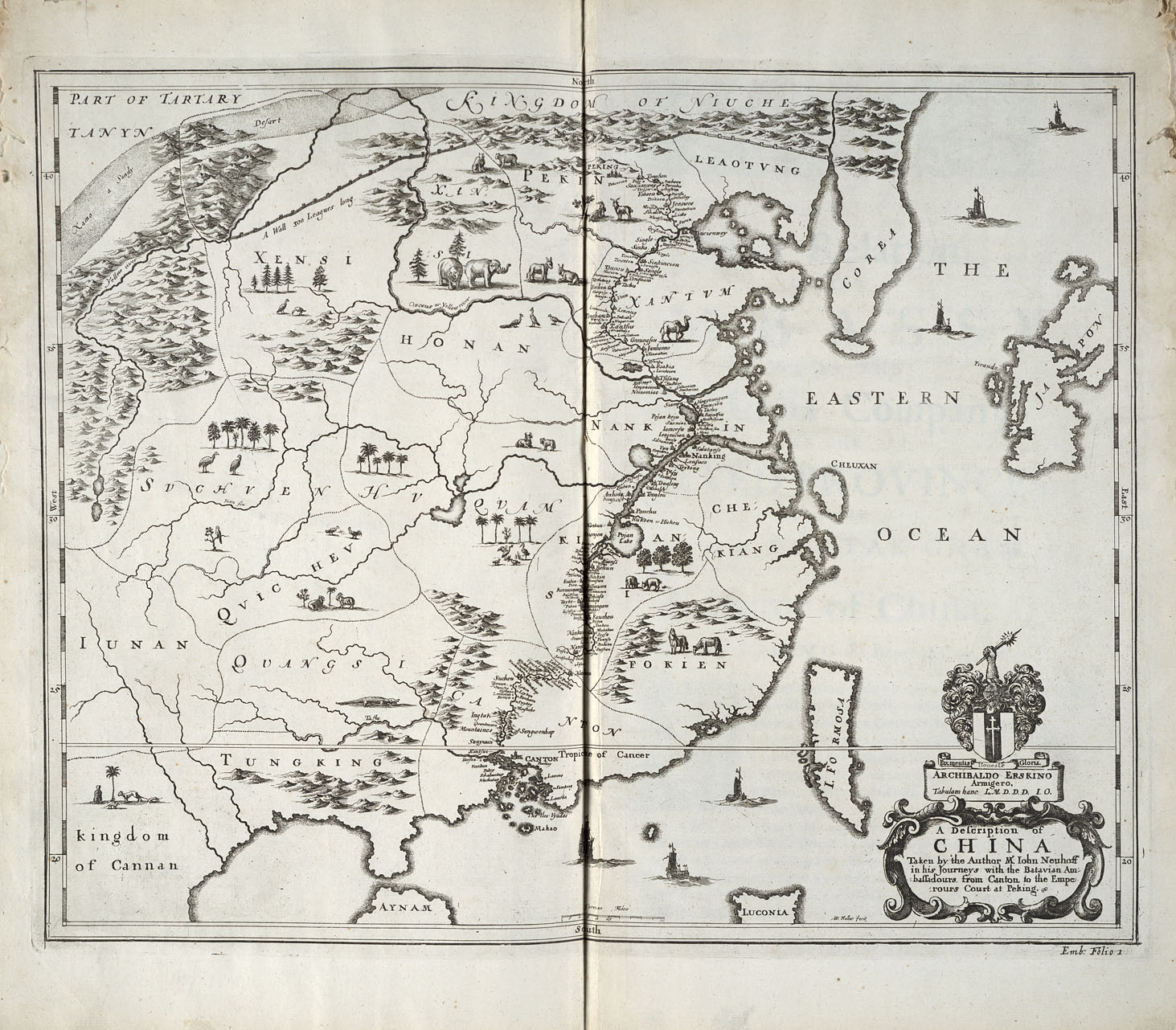 Карта Китая из книги Атанасиуса Кирхера "China Illustrata"В 1663-м году выходит его книга «Polygraphia» с описанием «полиглотического кода на пяти языках», который мог использоваться для шифрования и передачи сообщений на латинском, итальянском, французском, испанском и немецком языках, при этом декодирование могло производиться на любом из указанных языков. Чуть позже Кирхер сконструировал бюро для тайнописи, с таблицами на рейках, чтобы можно было быстро шифровать и расшифровывать письма. В одной из своих книг он приводит пример письма, на первый взгляд совершенно невинного, но содержащего тайное послание «предъявитель сего – предатель и убийца».