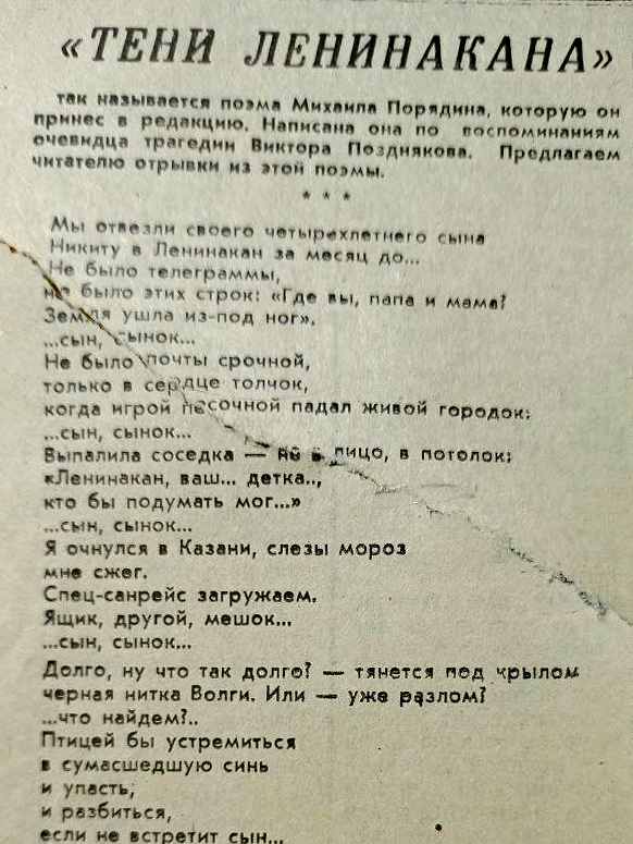 Но мы же историю пишем - нашёлся в ВК и ОК даже клип оригинального исполнения Виктором "Тени Ленинакана", 1989 год, январь, там ещё ребёнком Никита снят как раз по возвращению из Ленинакана. Гуляет по Ноябрьскому снегу.