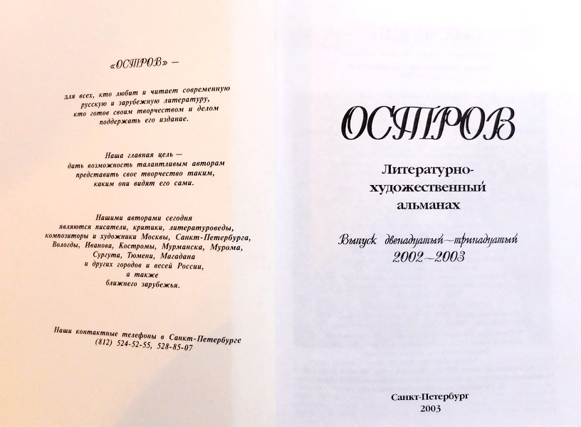 | ОСТРОВ. Литературно-художественный альманах. Выпуск 12-13, 2002-2003, Санкт-Петербург, 2003, с.66-69. 2002-2003. Остров, 12-13. Альманах