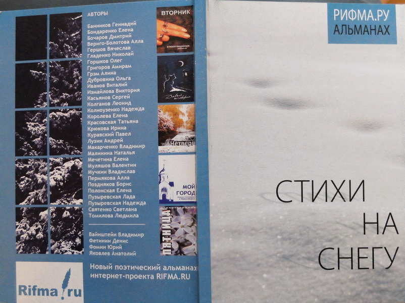 СТИХИ НА СНЕГУ. РИФМА.РУ. Альманах современной поэзии, Новосибирск, 2008. с. 56-57. https://yadi.sk/i/vh-6xLG5fYjwF