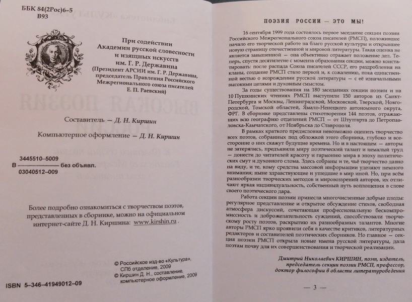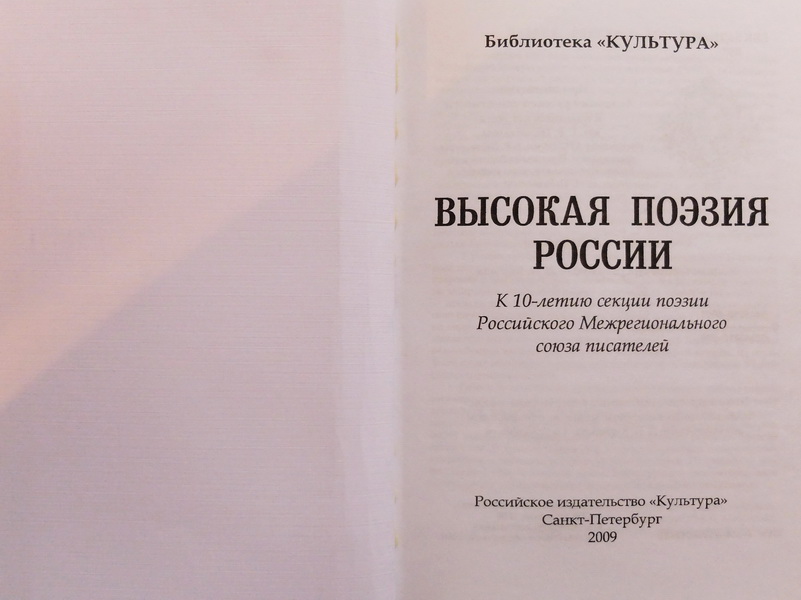 ВЫСОКАЯ ПОЭЗИЯ РОССИИ. К 10-летию секции поэзии Российского Межрегионального союза писателей. «Культура». Санкт-Петербург 2009. с.49-52. https://yadi.sk/i/Wa3MNg2ofVGcB