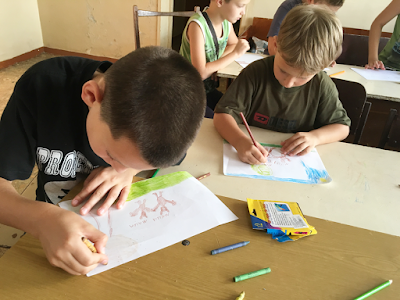 Начали уже традиционно за последние 2 недели - со сказок! Как и другие наши подшефные, дети с удовольствием прослушали и увлечённо начали ваять иллюстрации к услышанному. Рисунков получилось много и в разных стилях, а также с помощью разнообразных средств - в этой "изобразительной дискуссии" участвовали и краски, и карандаши, и фломастеры.