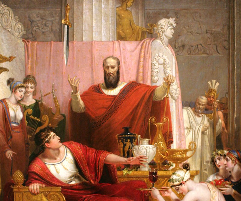 Согласно легенде, Дамокл завидовал своему царю Дионисию, говоря, что ему действительно повезло стать великим человеком, воплощением силы и власти, окруженным великолепием. В ответ на это Дионисий предложил поменяться местами с Дамоклом на один день, чтобы Дамокл мог лично испытать эту удачу.