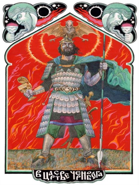 Чёрным небом владеет сынок его Дый, Пеклом Навьем командует сын его Вий, А Кощей его внук, взяв правленья бразды, Нынче царь всего царства близ чёрной звезды.