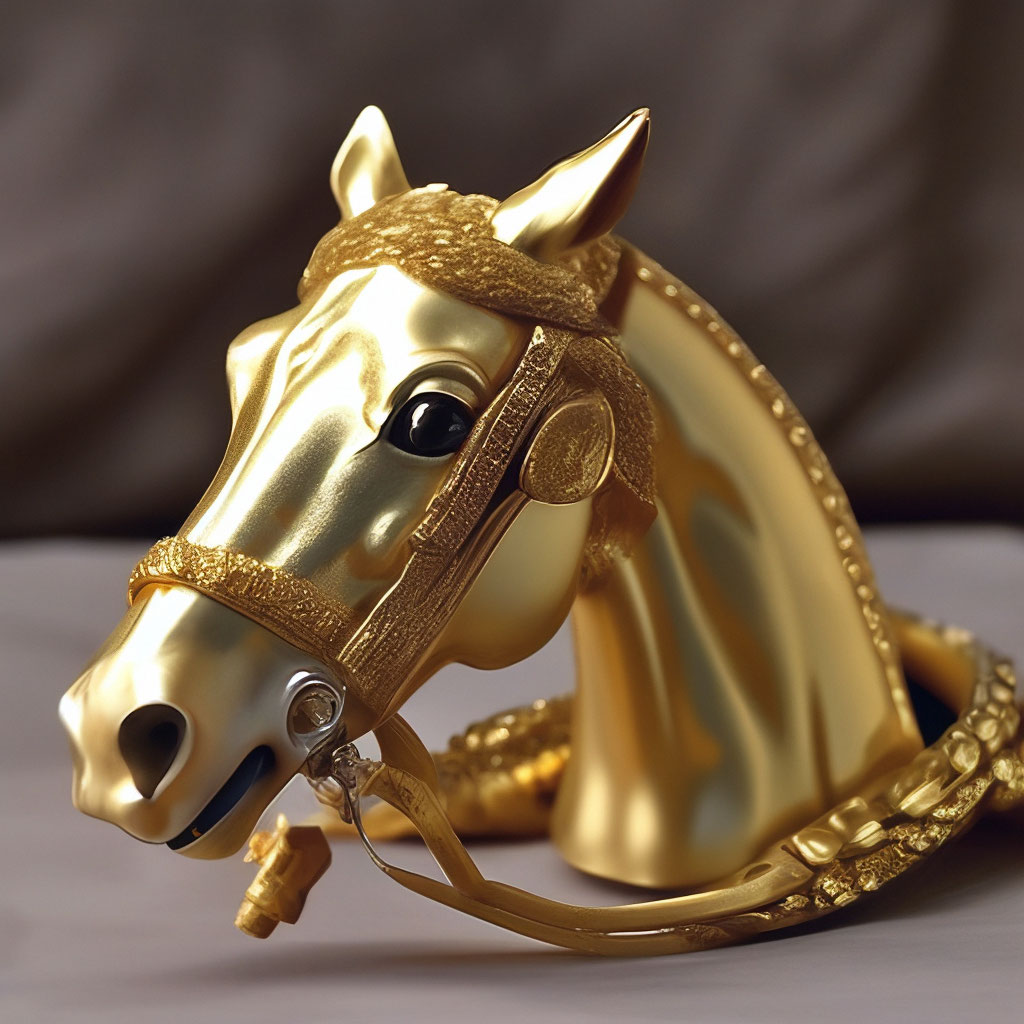 Хасан пробрался в крепость, подкрался к конюшне. Много было там коней, да только сразу увидел он золотогривого коня. А рядом с конем лежали золотое седло и золотая уздечка красоты необыкновенной.