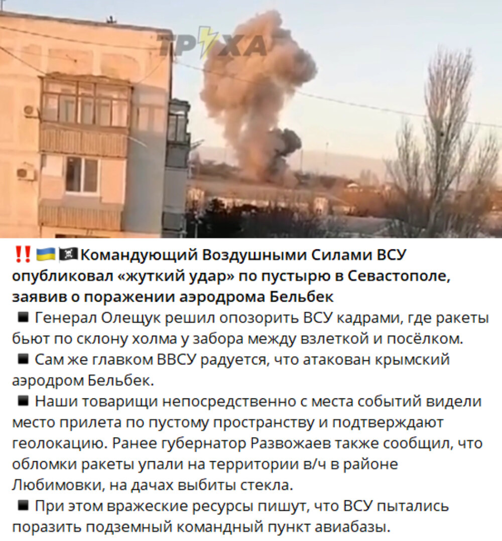 «Обломки украинских ракет упали на территорию воинской части в районе от н.п. Любимовка Республики Крым», — добавили в официальной сводке, подчеркнув, что повреждений авиационной техники нет. Но 12 дачных строений эти обломки ракет повредили.