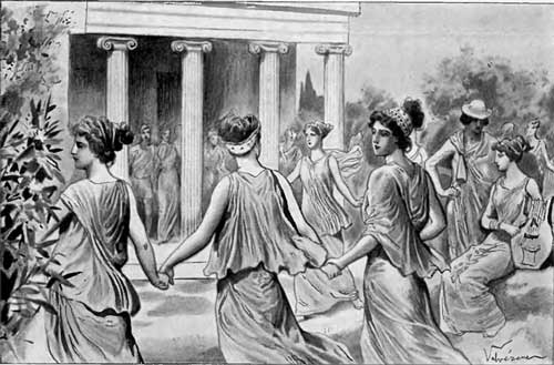 Процессия шла из Керамика, по самым лучшим улицам, украшенным дубовыми ветвями; народ, стоявший на улицах, весь был в белой одежде, мужчины и женщины. Путь процессии вёл через площадь народных собраний, мимо храмов Деметры и Аполлона. Пифийского. Акрополь блистал украшениями. Процессия входила туда, и совершалось богослужение, приносились жертвы при пении гимнов во славу богини Афины Паллады. Желаю Счастья! Сфера сказочных ссылок