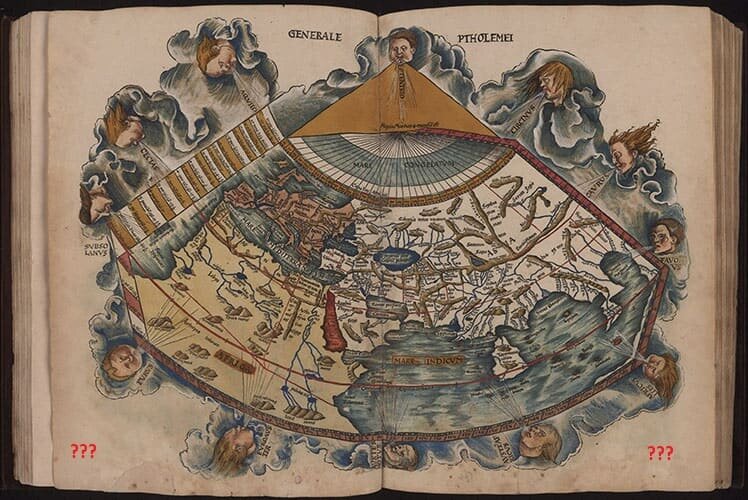 Однако, мы знаем, что карты это не оригинальные, а восстановленные. Следовательно, есть сомнение — а все ли восстановили в полном объеме? Нет карт — и нет вопросов. «Неисторическая земля». Все в строгом соответствии с общей парадигмой мировой истории. А представьте, что Птолемей знал о десятках крупных городов в восточной Скифии (т. е. Сибирь и Дальний Восток) — получилось бы «неудобно». Так что нельзя исключать такой возможности, что при восстановлении в XIV в. что-то было подвергнуто цензуре. Кстати, немаловажный факт — в современных копиях карт, имеющихся в открытом доступе отсутствует нумерация страниц как таковая. То есть все ли оцифровано и выложено — мы также не можем знать наверняка.