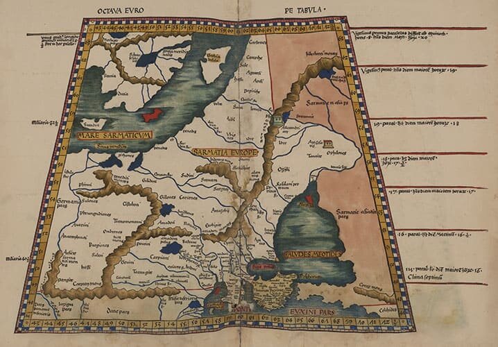 Европейская Сарматия — это в понимании Птолемея все земли от Балтики до Черного моря. С запада они граничат с Германией, а на востоке граница проходит по реке Танаис и/или Рипейским горам (которые к северу переходят в Гиперборейские).