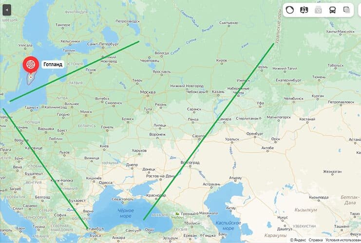Зеленым обозначено примерное соответствие региона Европейская Сарматия по Птолемею на современной карте